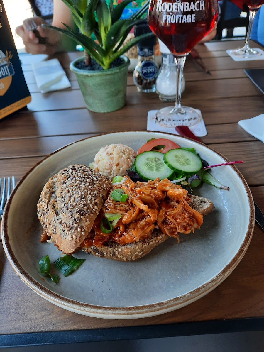 The menu at Grand Café Oud Rooij is a celebration of classic flavors with a modern twist. The pulled chicken is a standout, tender and full of savory notes that pair perfectly with their selection of drinks, especially the crisp white beer that’s refreshing and light. For those craving something heartier, the snitzel is golden, crispy, and generously portioned, while the carpaccio offers a delicate, flavorful alternative for lighter appetites. Breakfast or brunch visitors can enjoy the traditional uitsmijter, a Dutch-style open-faced sandwich topped with perfectly cooked eggs and fresh ingredients, embodying the café’s commitment to quality and comfort.